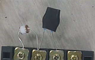 視頻2: 回路中加電1000V,20A時(shí),T-MOV起火燃燒。