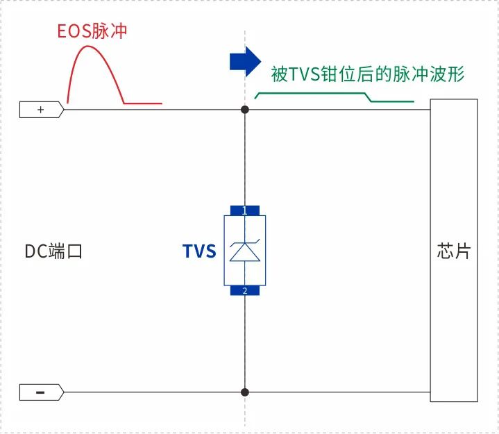如果你的充電端口是5V供電我們建議你選擇工作電壓(VDRM)7V的BV-FE07ZA,如果你的端口是9V-20V我們建議你選擇工作電壓24V的BV-D124ZD。我們知道不是所有的充電器(或電源)都穩(wěn)定,假如5V充電口也選擇工作電壓為5V的TVS,當插入不穩(wěn)定的充電器后可能會使TVS長時間在直流下導通,因而燒壞。 我們在服務客戶的過程中,常常有這樣的提問:在充電端口TVS到底該選單向還是雙向? 我們試著把這個問題解答清楚。首先,要理解什么是正向EOS、負向EOS,如上圖一,正向EOS是EOS電流從電路正極流向負極,但TVS遭受反向(N到P)的EOS沖擊,負向EOS是EOS電流從電路的負極流向正極,但TVS遭受正向(P到N)的EOS沖擊。