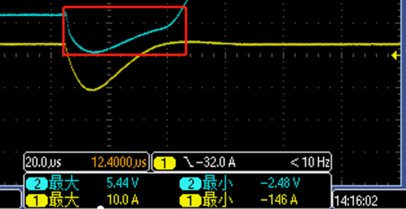 我們知道PN結有電流,會發(fā)熱,但只要不超過規(guī)格書標明出的-0.3到30V的工作電壓范圍,一定不會壞,對吧。再返回去看圖二圖三的電壓波形,假設充電IC端遭受負向的這兩個波形(把圖二翻轉(zhuǎn)180度),