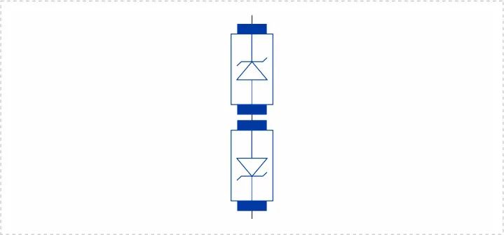 上面兩顆BV-FE05ZA的P極串聯(lián)在一起就組成了一顆雙向的TVS,如下圖四,TVS無論遭受正向還是負向的EOS沖擊,電流總會流經(jīng)一個N到P的反向結,因而鉗位電壓的絕對值也是在8.9V左右。
